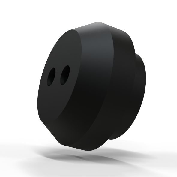 Passa fio com 2 furos de 2,5 mm cada. Produzido do material TPV (E.P.D.M) na cor preta.