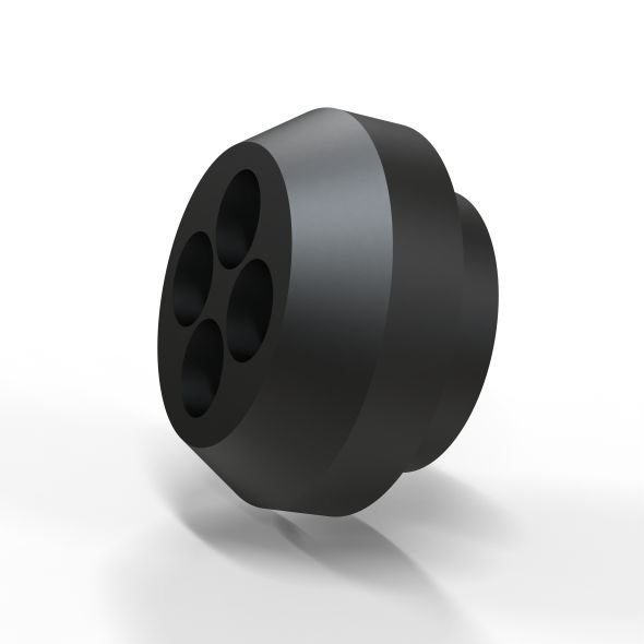 Passa fio com 4 furos de 4 mm cada. Produzido do material TPV (E.P.D.M) na cor preta.