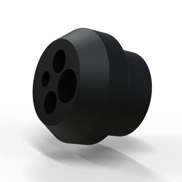 Passa fio com 1 furo de 7 mm, 2 furos de 5 mm e 1 furo de 3,5 mm. Produzido do material TPV (E.P.D.M) na cor preta.